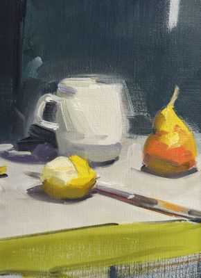 Please also bring 2 - 3 items you'd like to paint. We recommend simple, organic objects (depending on your level/experience/ambition). For example, apples and pears are much easier to paint than flowers, patterned vases or shiny teapots.
